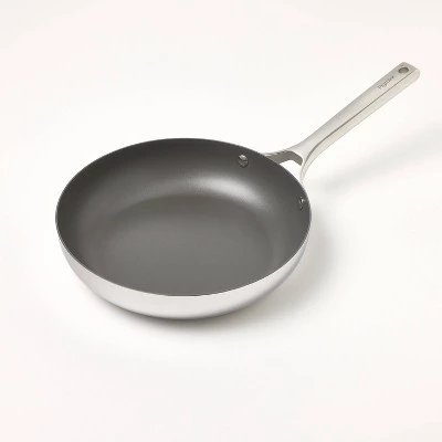 The 10-Inch Nonstick Stainless Steel Frypan from Figmintâ„¢ makes a versatile addition to your cookware. This 10-inch frypan’s aluminum core is fully surrounded by two layers of stainless steel for quick and even heat distribution, and the smooth surface features long-lasting nonstick coating for convenient use. Compatible with electric, gas and induction stoves, the pan is also oven safe up to 450 degrees Fahrenheit.