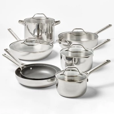 - Aluminum core is fully surrounded by two layers of stainless steel for quick and even heat distribution