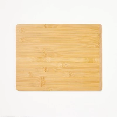 This 10-Inch x 13-Inch Reversible Bamboo Cutting Board from Figmintâ„¢ makes it easy to chop, slice and dice ingredients for your favorite recipes. Designed in a natural finish for a clean, classic look, this cutting board is made of lightweight bamboo for lasting use. The reversible design means you can use both sides, and tapered edges make it easy to lift off of the countertop to minimize dropped ingredients.