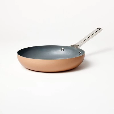 Tackle a wide variety of recipes with ease with this 10-Inch Nonstick Ceramic-Coated Aluminum Frypan from Figmint™. This frypan’s aluminum construction is ideal for even heat distribution, and the smooth, nonstick surface is convenient, easy to clean and helps you cook with minimal butter or oil (to protect the nonstick surface, use only with silicone, nylon or wood cooking utensils). It’s compatible with induction, gas and electric stoves and is also oven safe up to 450 degrees Fahrenheit, and it’s also dishwasher safe for simple post-meal cleanup.