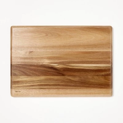 Add an elegant and versatile carving surface to your kitchen with this 14-Inch x 20-Inch Acacia Wood Carving Board with Juice Groove from Figmintâ„¢. Made from acacia wood, the carving board’s natural finish offers a clean, lovely look, and the reversible design means you can use both sides. Tapered edges make it easy to lift off your countertop, helping to reduce dropped ingredients, and integrated juice grooves minimize mess and make hand washing easier.