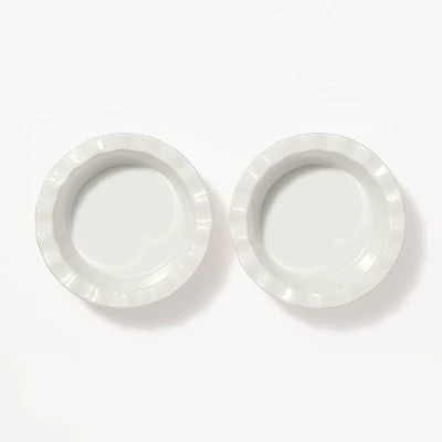 Wow family, friends and party guests with miniature pies, quiches or tarts with the help of these 2-Piece Round Stoneware Mini Pie Dishes from Figmintâ„¢. Made from stoneware in cream, these mini round pie dishes are microwave and freezer safe for versatile use, and they’re also oven safe up to 500 degrees. Plus, the dishwasher-safe construction allows for easy cleaning.