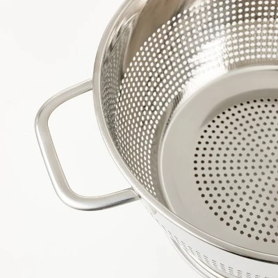 From rinsing fruits and veggies to draining your pasta, this 3-Quart Stainless Steel Colander from Figmintâ„¢ makes for comfortable, convenient use in your kitchen. The stainless steel construction is built to last and easy to maintain, with generously arranged holes that facilitate easy draining. Two side handles provide good grip for comfortable and convenient handling, while the base design allows the colander’s contents to sit above the draining surface. Plus, this stainless steel colander features a dishwasher-safe design so cleaning up is a breeze.