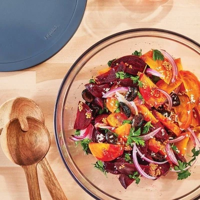 This 4-Quart Glass Mixing Bowl with Lid from Figmintâ„¢ is the perfect solution for mixing, storing and serving food. Made from clear glass with a tight-fitting blue lid that helps keep food fresh for longer, this BPA-free 4-quart mixing bowl will blend effortlessly with your other kitchenware. The bowl is dishwasher and microwave safe for easy cleaning and reheating, and since it’s also freezer safe, you can use it to store leftovers or save batter for another day.