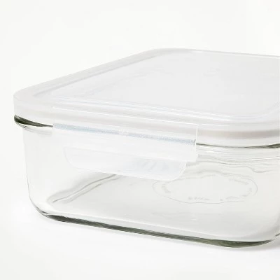Store leftovers, sauces and more with ease with this 8-Cup Glass Food Storage Container from Figmintâ„¢. Made from durable tempered glass, this clear food storage container won’t warp, stain or retain odors, and it comes with a leakproof, airtight latch lid. The container is top rack dishwasher safe for easy cleaning, and since it’s microwave safe without the lid, you can also use it to reheat leftovers.